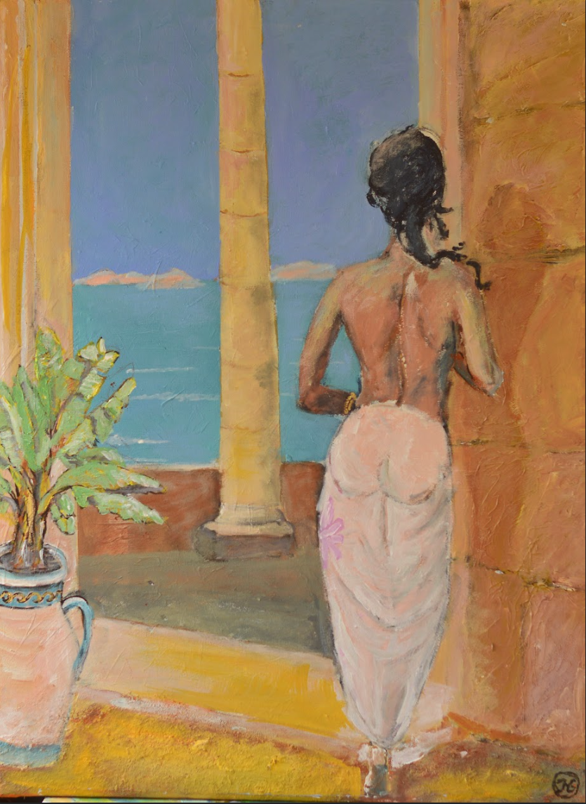 Several of the paintings in this collection are drawn from mythology and ancient art, such as The Three Minoan Priestesses, which reflects a fascination with ancient civilizations and their cultural narratives.